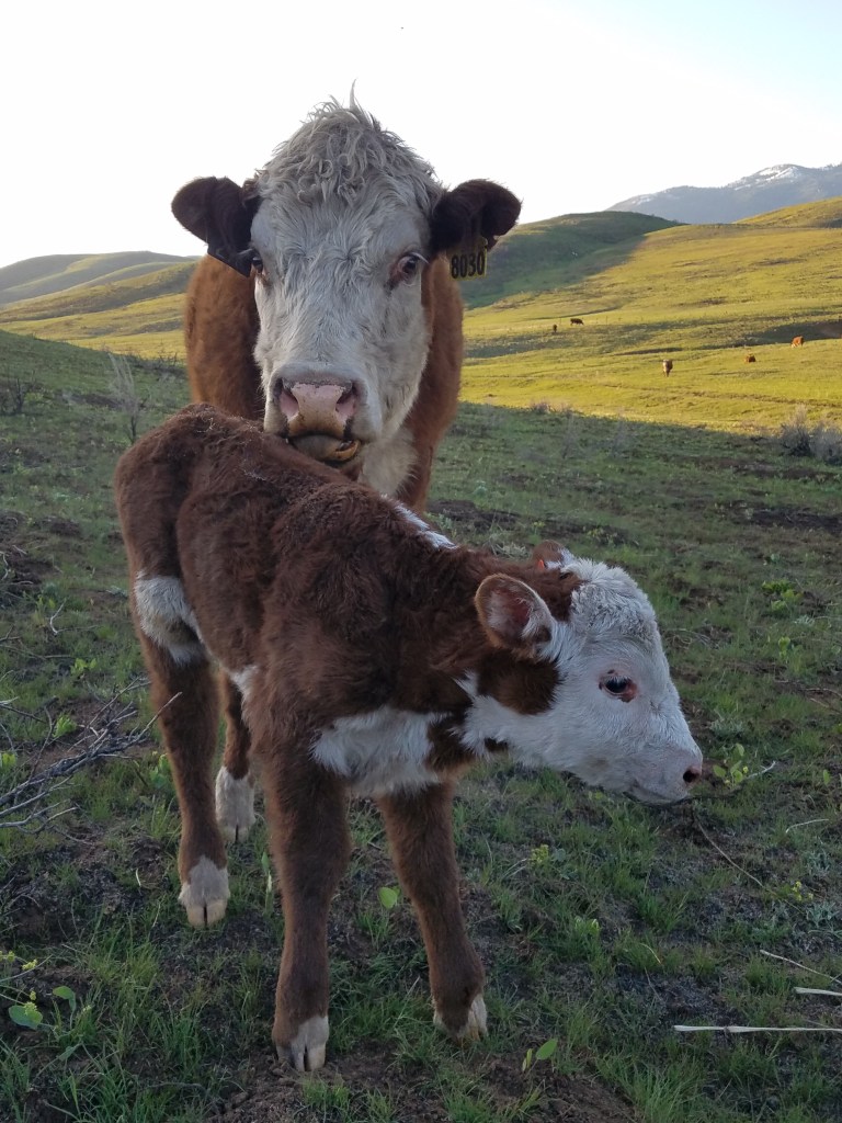 Last year we had a literal run for our money to get him tagged and weighed. A nice cross-country run… on foot… across 3 pastures, the barnyard, and several fences, 5 people and a 4-wheeler just to capture the little bugger. Did I mention he was only about 2 hours old? Yeah, so much for the myth that bull calves are lazy little slugs when they are born. Once returned to his dam, she was kind of like “oh, you brought us a little calf. He’s cute! I have one like that… how adorable…oh…hey, wait a minute… that is MY calf. I didn’t even know he was gone. Wow…. oh, hey, while you’re here, do you have anything to eat? I’m hungry… thanks for finding him, by the way.” As for her little bull calf, he walked out from around his mama, stood his ground and let out a hearty moo at us. Little potty mouth.