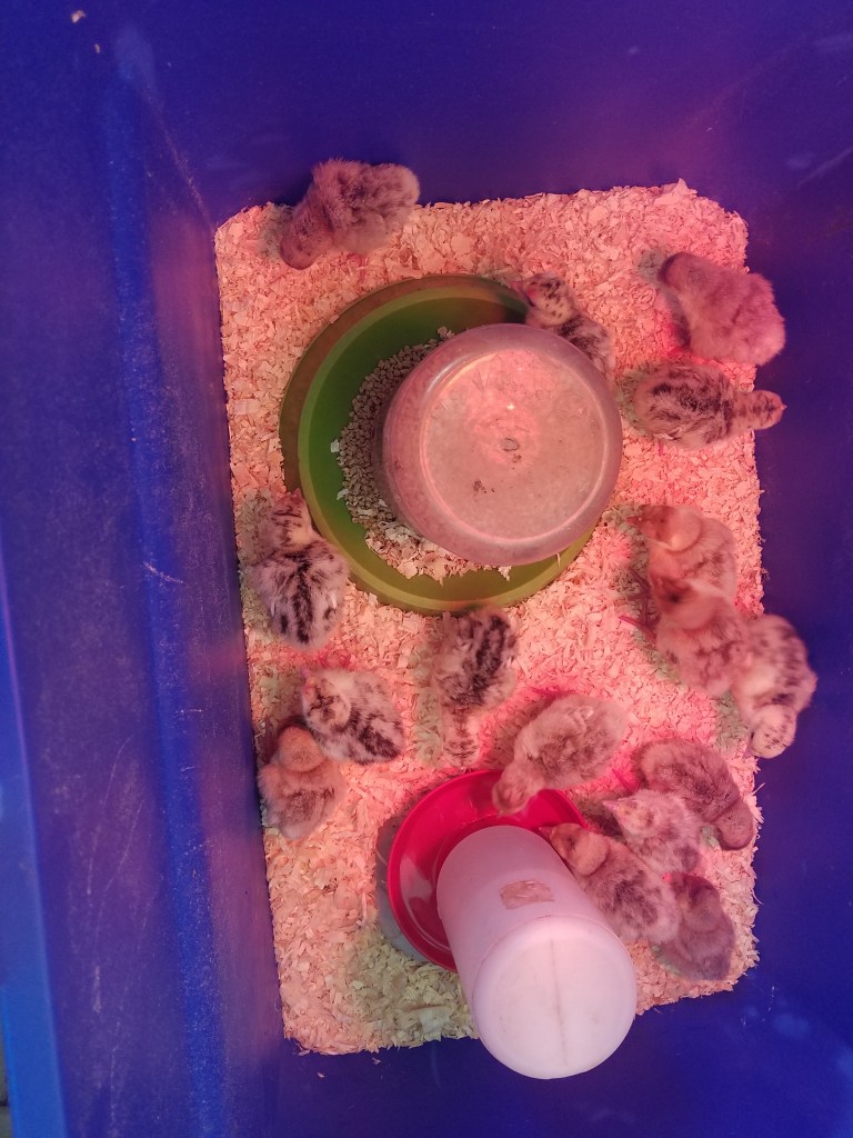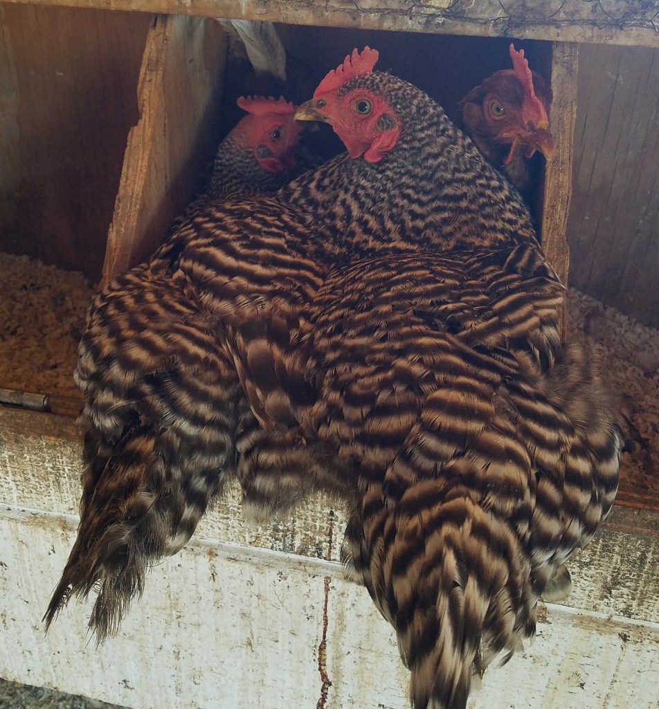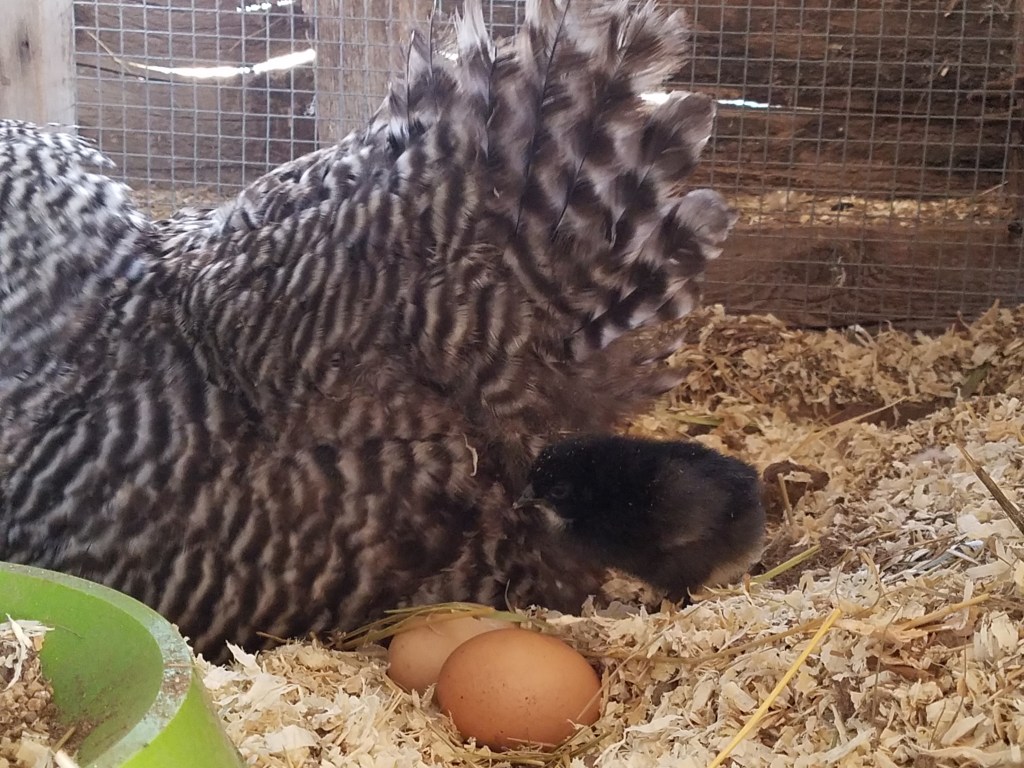 The chickens, appalled by these events, decided that they needed to take drastic action. They couldn’t be one-upped by turkeys so 3 of them made a pact to go broody… at the same time. Only one peep hatched … heat, was a big factor on hatch rate… Corndog lost all of her eggs – twice. She almost holds the record of being broody the longest but she is now happily molting. A no-named foster chicken was the last of the trio setting. She was moved to a better brooding spot with a little cooler temperatures but she, too, did not hatch any of her eggs.