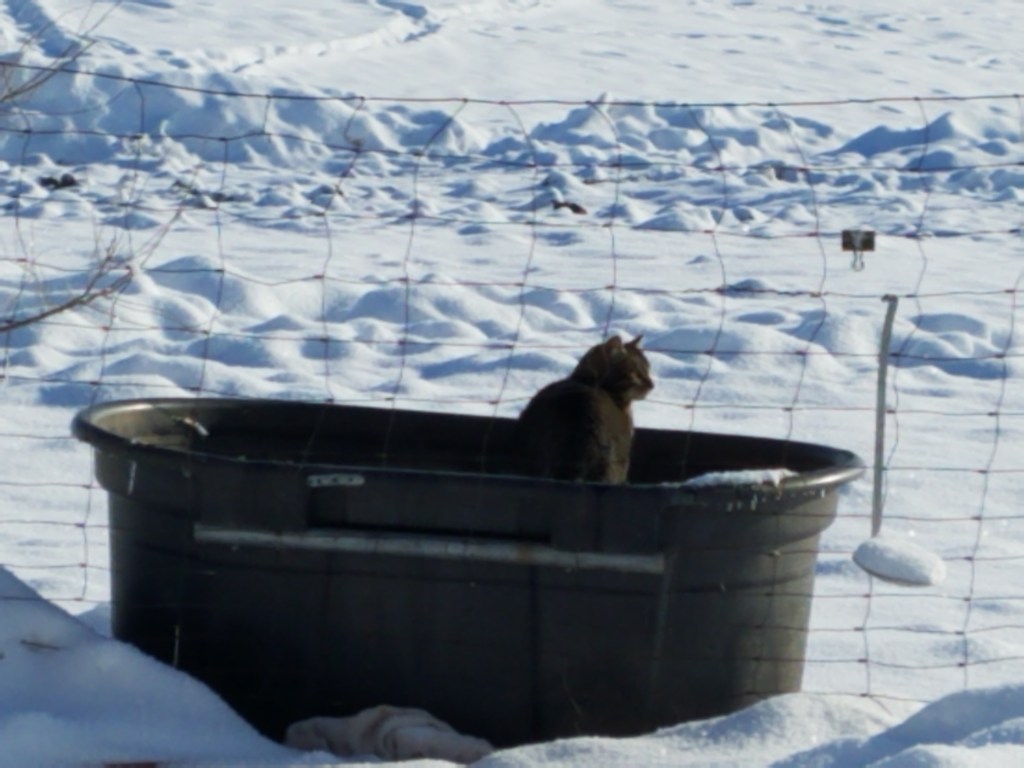 That tank is next to the house, gets checked whenever someone goes in or out so it was surprising to see that it froze hard overnight.. I’m still ready to just get the muddy days over with… it’s already coming into the house anyways π Love the kitty… looks like our Mama Bandana