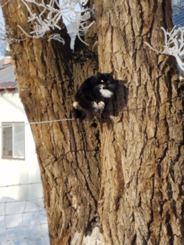 He also gets called ‘squirrel’ – like in ‘tree squirrel’. He seems to have a passion for climbing…stuff like trees – big trees, small trees – wooden fences, rails in the barn, your leg…. he just likes to climb. Sometimes he is after a bird, wants your attention or, well, who knows with Mittens.