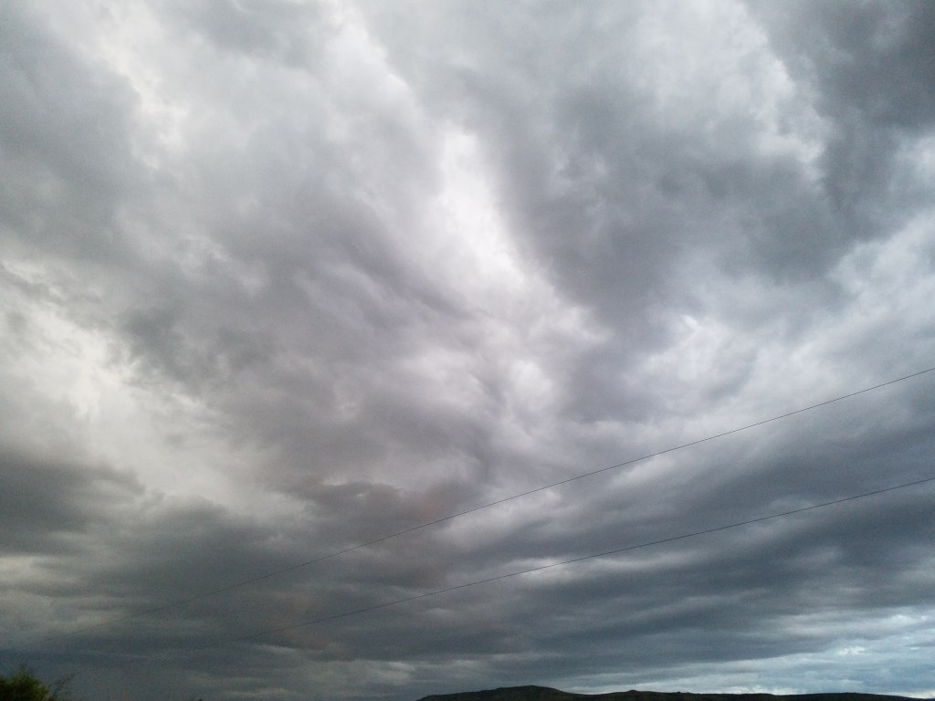 … to those farmers who sacrificed their second cutting of hay to the rain gods. The offering was accepted and about a tenth of rain fell from the sky. Enough to make windshields a dirty mess but it did settle the dust a bit. Even the critters seemed content.